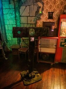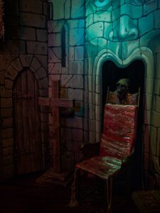 Play is actively encouraged, so please bring a few toys…or use your hands! The small dungeon is located to the right of the stage and there are four pieces including a throne!